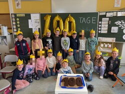 Die Klasse 1c hat diesen besonderen Tag gemeinsam gefeiert. Es gab Luftballons, Kronen und Kuchen – alles, was zu einer richtigen Feier dazugehört.