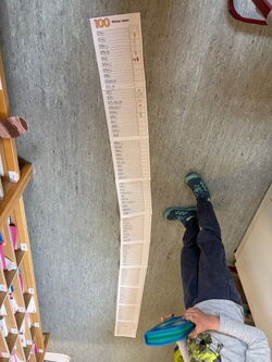 Auch die Zahl 100 spielte immer wieder eine Rolle: Gemeinsam schrieb und las die Klasse 100 Wörter, rechnete 100 Aufgaben, stempelte 100 Buchstaben und Zahlen und zeichnete 100 mal das Klassentier.