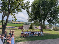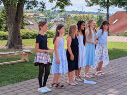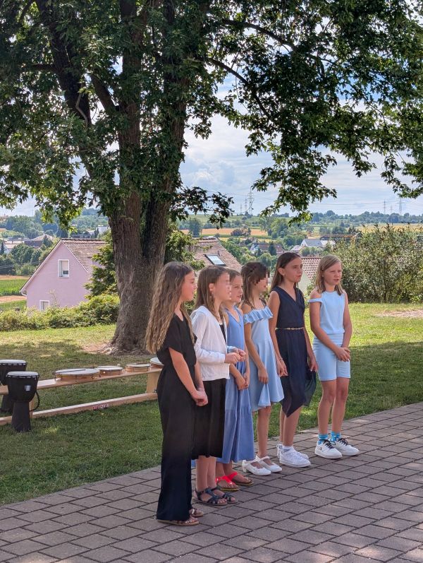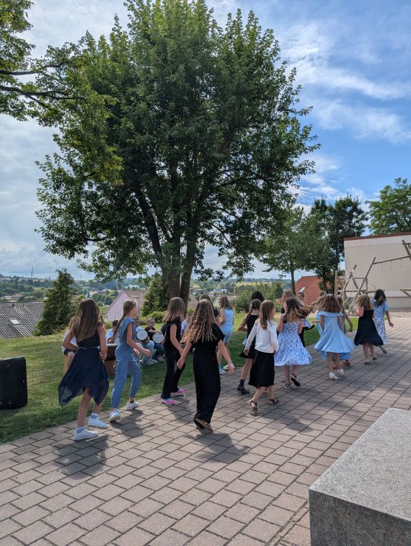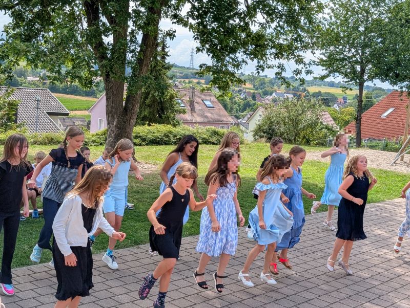 Am 25.07.2025 trafen sich die Viertklässler der Henri-Arnaud-Grundschule mit ihren Eltern und Lehrern im Schulhof, um ihren Abschied zu feiern. Bei einer Tanz- und Trommelvorführung zeigten die Schülerinnen und Schüler beeindruckende Talente. Nach einer Ansprache der Klassenlehrerin Frau Landauf und Schulleiterin Frau Sartorius erhielten die Kinder die Abschlusszeugnisse der Grundschule, einige auch ein Lob oder einen Buchpreis. Eine Fotoshow, Luftballons, leckeres Essen und eine Tanzeinlage der Eltern umrahmten die Feier.