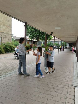 Nicht zuletzt durften wir Frau Nonnenmann in den wohlverdienten Ruhestand entlassen. Nach 31 Jahren Schuldienst und davon 26 Jahren als Lehrkraft in Ötisheim darf sie nun ihre Zeit ohne schulische Verpflichtungen gestalten. Die ganze Schulgemeinschaft veranstaltete zum Abschied einen Flashmob auf dem Schulhof für sie und alle sangen gemeinsam "Wir sagen dir tschüss". Blumen und ein von allen Klassen und Lehrern gestaltetes Buch sollten ihr den Abschied erleichtern.