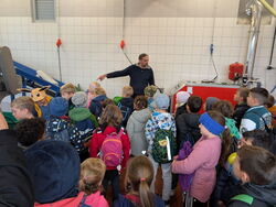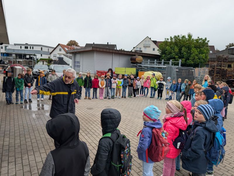 Am 26.09.25 unternahmen die Klassen 2a und 2b einen unterhaltsamen Ausflug. Von der Henri-Arnaud-Grundschule aus ging es zur nahegelegenen Kelter, wo die Klassen von sechs engagierte Mitarbeiter des Bauhofs und des Obst- und Gartenbauvereins erwartet wurden. Sie zeigten den Zweitklässlern mit großer Begeisterung, wie man Apfelsaft presst.