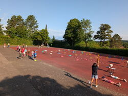 Bei bestem Wetter fanden am 15. Juli die diesjährigen Bundesjugendspiele an der Henri-Arnaud- und der Gustav-Heinemann-Schule statt. Kein normaler Schultag – Bewegung, Spiel, Spaß aber auch sich gegenseitig messen, anfeuern und beglückwünschen standen im Mittelpunkt. Schon um 7:30 Uhr kamen viele Eltern, um mit den LehrerInnen die Wettkampfstätten aufzubauen. So richtig wach wurden alle beim fetzigen Warm-Up von Frau Landauf. Aufgewärmt strömten im Anschluss alle Sportler und Kampfrichter an die erste Station. Schnell laufen – über Hindernisse, im Slalom oder mit einem Start aus verschiedenen Stellungen, in die Weite oder Höhe springen, Werfen mit verschiedenen Bällen und Ausdauernd laufen, waren ein Ausgleich zum vielen Stillsitzen und Denken. Als Belohnung für die Anstrengungen des Tages gab es als Überraschung ein Eis. Der Elternbeirat hatte den Eis-Leo bestellt. Am nächsten Tag bekamen die teilnehmenden Kinder ihre Urkunden. An dieser Stelle ein ganz großes Dankeschön an alle helfenden Eltern, dem Hausmeisterteam für den Aufbau, Frau Kolarzik für die ganze Organisation sowie den beteiligten Lehrerinnen und Lehrern.
