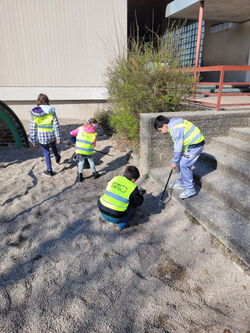 Am Freitag, 20.03.26 hieß es – raus aus dem Schulhaus und ab auf die Suche nach den Müllsündern. Auf Initiative des Elternbeirates hatte die Firma Pre Zero die notwendigen Utensilien gespendet. So durchkämmten die Schulkinder ausgestattet mit Warnwesten, Greifzangen und Eimern das Gebiet rund um die Schule. Zuerst war der Schulhof dran, entsetzt von der Menge Müll, die gefunden wurde, erweiterte die 2a voller Tatendrang den Radius bis zum Spielplatz. Das Ergebnis war beeindruckend. Gefüllt mit vielen Zigaretten, Taschentüchern, Plastik, Dosen und sogar einem Handschuh, standen am Ende 13 volle Eimer im Schulhof. Jetzt wurde noch sortiert und dann in den richtigen Containern verteilt. Solche Müllsammelaktionen sind ein wichtiger Schritt hin zu einer sauberen und gesünderen Umwelt. Außerdem machen sie auch jede Menge Spaß. Daher wird ab jetzt jeden Monat eine andere Klasse die Aktion übernehmen. Vielen Dank an die Firma Pre Zero für die großzügige Spende, mit der die Kinder sicher ihren Beitrag für mehr Sauberkeit in Ötisheim und eine bessere Umwelt leisten können.