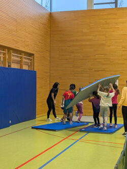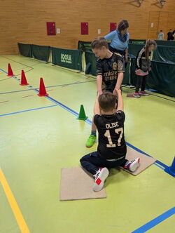 diesen Wunsch konnten sich die Kinder der Henri-Arnaud- und der Gustav-Heinemannschule erfüllen. Als Höhepunkt vor den Winterferien, parallel zur Winterolympiade in Italien, wartete eine winterliche Bewegungslandschaft in der Sporthalle auf sie. Schnell wurde klar, es standen Fairness, Respekt und gegenseitiges Unterstützen im Mittelpunkt, nicht das Gewinnen. An 10 Stationen gab es das Erlebnis Winterolympiade pur. Beim Rodeln auf Rollbrettern zeigten die Schülerinnen und Schüler viel Geschick, ebenso beim Curling, Bobfahren und Schlittschuhlaufen mit den Teppichfliesen. Im Team wurden Schneebretter transportiert und Eskimohunde zogen einen Schlitten.