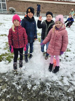 Endlich lag einmal an einem Schultag Schnee und die Klasse 1a konnte den Sportunterricht nach draußen verlegen. Kurzerhand wurden die „Poporutscher“ gepackt und der Bolzplatz zum Schlittenhang umgebaut. Auch Schneemänner entstanden und die Klasse hatte neben viel Bewegung auch eine ganze Menge Spaß.
