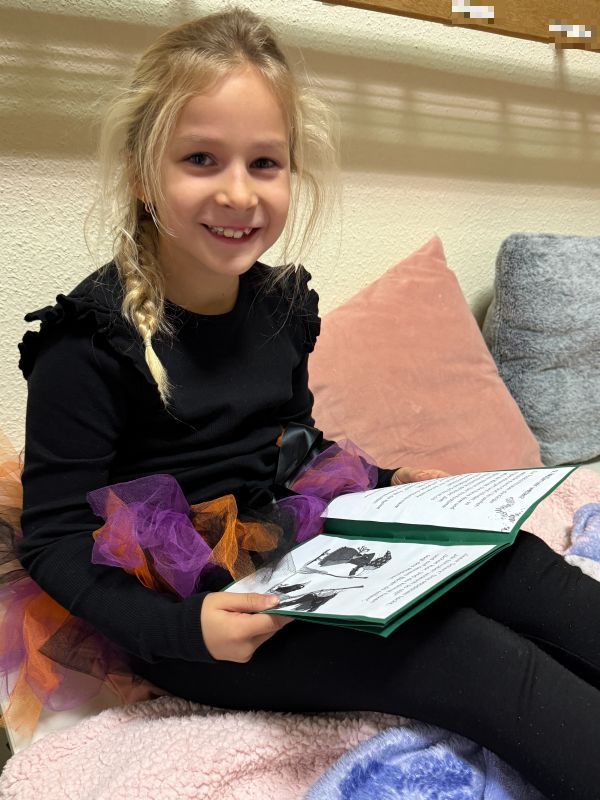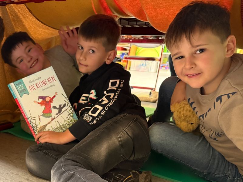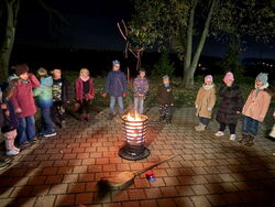 Nachdem die Kinder morgens beim Vorlesetag von Julian Terhorst bereits den Geschichten über die kleine Hexe und ihren Raben Abraxas gelauscht hatten, konnten sie nun selbst einige Kapitel in vereinfachter Sprache lesen und Rätsel dazu bearbeiten. Dafür machten es sich die Kinder auf Decken, Kissen und in selbstgebauten Höhlen richtig gemütlich. Zwischendurch konnten sie zur Abwechslung noch den Raben Abraxas basteln oder ein Hexenbild malen. Danach hatten sich alle eine Pause verdient. Am Buffet mit zahlreichen leckeren Köstlichkeiten von den Eltern konnte sich jeder bedienen und genüsslich schlemmen. Dazu schmeckte auch der frisch zubereitete Zauberpunsch. Nach dieser Stärkung und einer weiteren Geschichte von der kleinen Hexe ging der Leseabend seinem Ende entgegen. Abschluss waren Hexentänze um den Feuerkorb, wie es auch die kleine Hexe in der Walpurgisnacht gemacht hat. Der Leseabend war eine gelungene Aktion, die Spaß gemacht und die Freude an Geschichten und am Lesen geweckt hat.