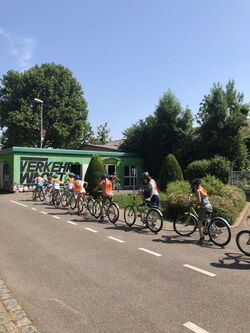 Die theoretischen Inhalte für die Fahrradausbildung wurden im Rahmen des Sachunterrichts in der Schule vermittelt. Die drei praktischen Einheiten und die Prüfung fanden in der Jugendverkehrsschule in Mühlacker statt. Die beiden Polizisten, Herr Bauer und Herr Weber, schulten die Kinder z.B. im Linksabbiegen und im Einhalten der Verkehrsregeln.
