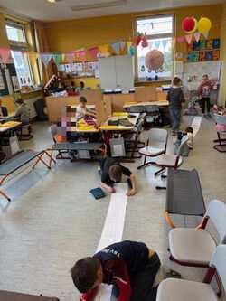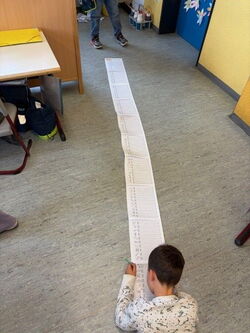 Auch die Zahl 100 spielte immer wieder eine Rolle: Gemeinsam schrieb und las die Klasse 100 Wörter, rechnete 100 Aufgaben, stempelte 100 Buchstaben und Zahlen und zeichnete 100 mal das Klassentier.