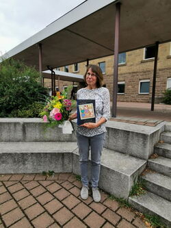 Nicht zuletzt durften wir Frau Nonnenmann in den wohlverdienten Ruhestand entlassen. Nach 31 Jahren Schuldienst und davon 26 Jahren als Lehrkraft in Ötisheim darf sie nun ihre Zeit ohne schulische Verpflichtungen gestalten. Die ganze Schulgemeinschaft veranstaltete zum Abschied einen Flashmob auf dem Schulhof für sie und alle sangen gemeinsam "Wir sagen dir tschüss". Blumen und ein von allen Klassen und Lehrern gestaltetes Buch sollten ihr den Abschied erleichtern.
