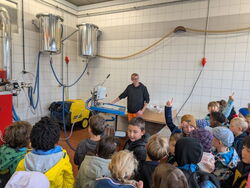 Am 26.09.25 unternahmen die Klassen 2a und 2b einen unterhaltsamen Ausflug. Von der Henri-Arnaud-Grundschule aus ging es zur nahegelegenen Kelter, wo die Klassen von sechs engagierte Mitarbeiter des Bauhofs und des Obst- und Gartenbauvereins erwartet wurden. Sie zeigten den Zweitklässlern mit großer Begeisterung, wie man Apfelsaft presst.