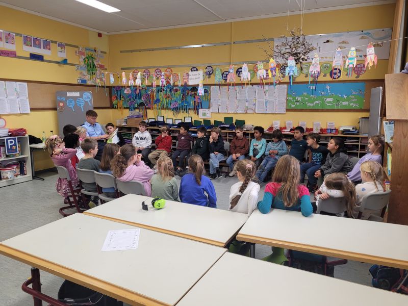 Ordentlich sein, brav sein, nichts stibitzen … dafür ist der kleine Rabe Socke nicht unbedingt bekannt. Aber was, wenn die verschwundenen Äpfel oder die dreckige Wäsche diesmal gar nichts mit dem Raben zu tun haben? Beim Vorlesetag ging es in der 2a um Vorurteile und Vorverurteilungen und wer konnte so etwas besser vorlesen, als ein „waschechter Polizist“? Begeistert hörten die Kinder Herrn Terhorst zu, der in seiner Polizeiuniform in die zweiten und dritten Klassen der Henri-Arnaud-Grundschule gekommen war, um den bundesweiten Vorlesetag mitzugestalten. Herzlichen Dank für das großartige Engagement!