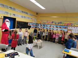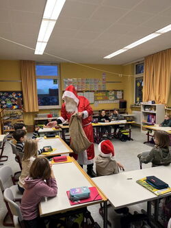 Der Nikolaus besuchte am 06.12. höchst persönlich alle Klassen der Henri-Arnaud- und der Gustav-Heinemann-Schule. Mit Gedichten, Liedern und Rhythmicals wurde er begrüßt und konnte zu jeder Klasse etwas erzählen. Knecht Ruprecht hatte er zum Glück zu Hause gelassen, fühlte sich doch manch einer ertappt bei dem, was der Nikolaus zu berichten hatte. Es gab jedoch auch viel Gutes zu sagen und so erhielt jedes Kind eine kleine Süßigkeit. Vielen Dank an die Gustav-Heinemann-Schule für das Bereitstellen der Leckerei und den gelungenen Auftritt des Nikolauses, er wird den Kindern sicher lange im Gedächtnis bleiben.