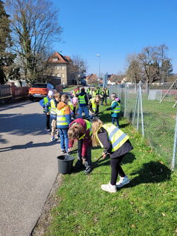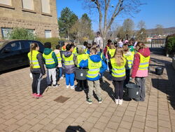 Am Freitag, 20.03.26 hieß es – raus aus dem Schulhaus und ab auf die Suche nach den Müllsündern. Auf Initiative des Elternbeirates hatte die Firma Pre Zero die notwendigen Utensilien gespendet. So durchkämmten die Schulkinder ausgestattet mit Warnwesten, Greifzangen und Eimern das Gebiet rund um die Schule. Zuerst war der Schulhof dran, entsetzt von der Menge Müll, die gefunden wurde, erweiterte die 2a voller Tatendrang den Radius bis zum Spielplatz. Das Ergebnis war beeindruckend. Gefüllt mit vielen Zigaretten, Taschentüchern, Plastik, Dosen und sogar einem Handschuh, standen am Ende 13 volle Eimer im Schulhof. Jetzt wurde noch sortiert und dann in den richtigen Containern verteilt. Solche Müllsammelaktionen sind ein wichtiger Schritt hin zu einer sauberen und gesünderen Umwelt. Außerdem machen sie auch jede Menge Spaß. Daher wird ab jetzt jeden Monat eine andere Klasse die Aktion übernehmen. Vielen Dank an die Firma Pre Zero für die großzügige Spende, mit der die Kinder sicher ihren Beitrag für mehr Sauberkeit in Ötisheim und eine bessere Umwelt leisten können.
