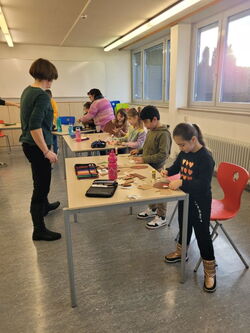 Adventliches Singen am Montagmorgen, liebevoll gestaltete Klassenzimmer, Adventskalender und -geschichten – in großen Schritten geht es auf Weihnachten zu. Auch das Backen gehört zu den schönen Traditionen in der Vorweihnachtszeit. So traf sich die Klasse 4c der Gustav-Heinemann-Schule mit der 2a der Henri-Arnaud-Grundschule zu einem gemeinsamen Vormittag. Nach dem Händewaschen ging es an die Arbeitsflächen, da wurde geknetet und ausgestochen. 5 Mütter unterstützten die Kinder und so waren im Handumdrehen viele Bleche voll mit leckeren Plätzchen. Ein Blech nach dem anderen wanderte in den Ofen und verbreitete weihnachtliche Gerüche im ganzen Schulhaus. Im Nachbarzimmer bastelte die zweite Gruppe Rentiere. Die Hände als Vorlage für das Geweih und die rote Nase – hübsche Fensterbilder zieren jetzt die Klassenzimmer. Einige ganz schnelle Kinder durften noch Kerzen gestalten. Beim gemeinsamen Abschluss wurde gesungen und natürlich die köstlichen Plätzchen probiert. Ein ganz herzliches Dankeschön den helfenden Händen beim Backen, Basteln und Teig Vorbereiten, ohne Unterstützung der Eltern wäre diese gelungene Aktion nicht möglich gewesen.