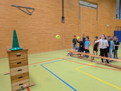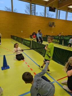 diesen Wunsch konnten sich die Kinder der Henri-Arnaud- und der Gustav-Heinemannschule erfüllen. Als Höhepunkt vor den Winterferien, parallel zur Winterolympiade in Italien, wartete eine winterliche Bewegungslandschaft in der Sporthalle auf sie. Schnell wurde klar, es standen Fairness, Respekt und gegenseitiges Unterstützen im Mittelpunkt, nicht das Gewinnen. An 10 Stationen gab es das Erlebnis Winterolympiade pur. Beim Rodeln auf Rollbrettern zeigten die Schülerinnen und Schüler viel Geschick, ebenso beim Curling, Bobfahren und Schlittschuhlaufen mit den Teppichfliesen. Im Team wurden Schneebretter transportiert und Eskimohunde zogen einen Schlitten.
