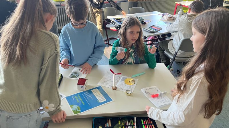 An fünf Stationen konnten die Kinder selbstständig folgenden Fragen auf den Grund gehen: Aus welchen Gasen besteht die Atmosphäre? Was bedeutet der Treibhauseffekt und wie entsteht er? Wie kann Energie umgewandelt werden? Wie viel Strom verbrauchen unterschiedliche Geräte? Was sind die Folgen des Klimawandels?