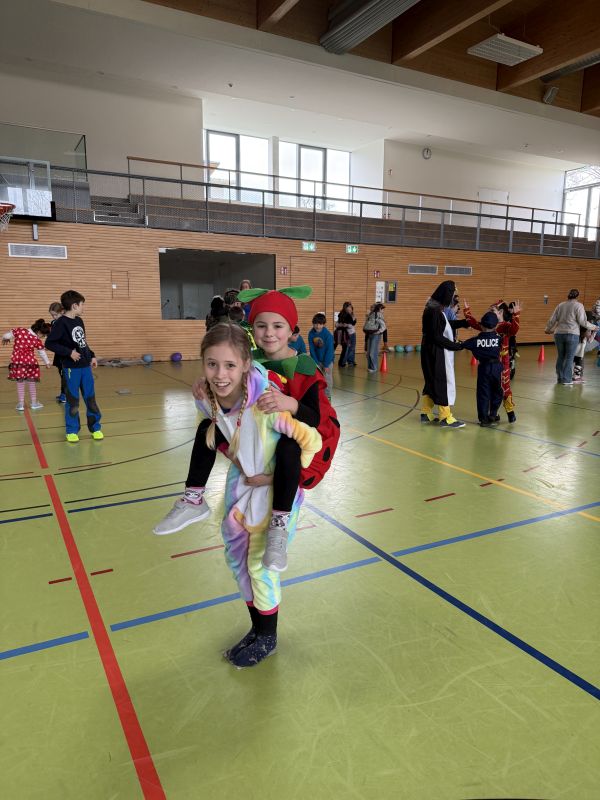 Neben dem Tanzen sorgten lustige Staffelspiele für zusätzliche Unterhaltung. Besonders beeindruckend war die Vielfalt der Kostüme. Die fantasievollen Verkleidungen machten die Sporthalle zu einem bunten Meer aus Farben, Glitzer und kreativen Ideen. Am Ende der Feier waren sich alle einig: Diese Faschingsparty war ein voller Erfolg. So konnten alle gut gelaunt und voller Vorfreude in die Faschingsferien starten.
