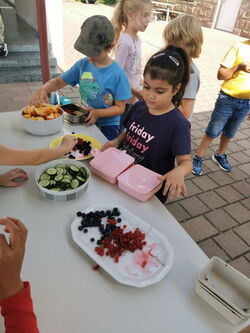 Am vorletzten Schultag fand ein gelungener Früchtetag statt. Die Kinder schienen es zu genießen, die regionalen Früchte zu essen und nebenbei mit ihren Mitschülern*innen zu plaudern. Vor allem die Beeren waren innerhalb kürzester Zeit verspeist. Ein großer Dank gilt den fleißigen Helferinnen, die uns tatkräftig unterstützt haben. Wir wollen uns an dieser Stelle auch bei allen anderen Helfer*innen bedanken, die uns in diesem Schuljahr bei den zahlreichen Aktionen unterstützt haben. Ohne euch, wäre das alles nicht möglich gewesen! (Einschulung, Herbstlicher Früchtetag, Lichterfest, Osternest-Suche, Zirkus, Sommerlicher Früchtetag). Vielen Dank! Wir wünschen allen Kindern, Eltern und Familien schöne Ferien und freuen uns schon jetzt auf die nächsten gemeinsamen Aktionen mit euch im neuen Schuljahr. Der Elternbeirat der Henri-Arnaud-Grundschule