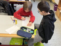 Am 1. 12. bastelten die Schüler der Klasse 4a gemeinsam mit ihren Patenkindern aus der 1a Sterne aus Butterbrotpapier. Es wurde geklebt und geschnitten. Am Anfang halfen die Viertklässler den Erstklässlern, doch bald konnten sie viel alleine machen. Die Ergebnisse waren verschieden und alle auf ihre Art und Weise sehr schön. Als die „Großen“ ihre Sterne bastelten, halfen die Patenkinder kräftig mit. So konnte zum Schluss jeder seinen eigenen Stern präsentieren. Es war eine sehr schöne Stunde, die uns allen viel Spaß machte!