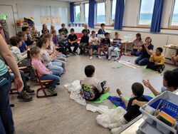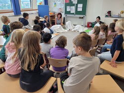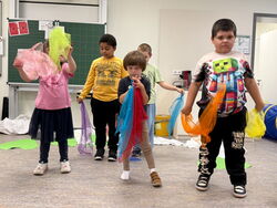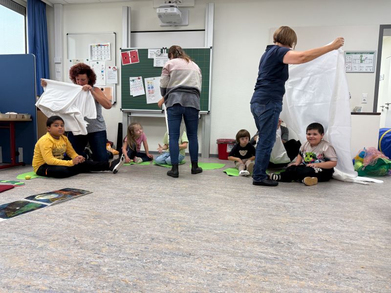 In der letzten Schulwoche waren die Klasse 1a und 1b der Henri-Arnaud-Grundschule bei ihrer Kooperationsklasse der Gustav-Heinemann-Schule zu einer kleinen Aufführung eingeladen. Durch einen Tunnel gelangten die Erstklässler ins Klassenzimmer der 1c. Die Kinder der Gustav-Heinemann-Schule führten die „Kleine Raupe Nimmersatt“ als kleines Singspiel auf. Nach dem Tanz der Schmetterlinge freuten sie sich über den verdienten Applaus.