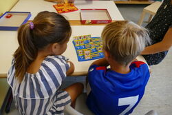 Die Erstklässler begannen in der Sporthalle mit dem Minigolf, die Zweitklässler durften als Erstes die Kühle des Schulhauses nutzen und sich dort mit den Brettspielen beschäftigen. Die Drittklässler starteten den Spieletag mit verschiedenen Pausenspielen auf dem Schulhof und die Viertklässler versuchten sich an den Geschicklichkeitsspielen auf dem roten Platz. Dort erhielten alle Schüler, wenn sie an der Station waren zur Erfrischung noch Wassermelone.