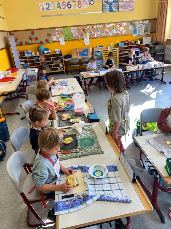 Danach durften die Kinder ihr eigenes gesundes Pausenbrot zubereiten und natürlich auch essen. Das machte ihnen besonders viel Spaß. Es war ein toller Vormittag, bei dem die Kinder mit Begeisterung und Freude gelernt haben, welche Lebensmittel ihnen und ihrem Körper guttun.